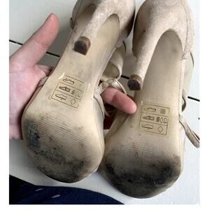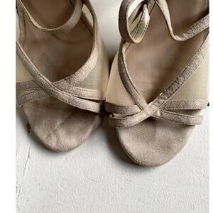 ALDO Heels Womens 9 Beige Faux Suede Open Toe Mesh Inset Strappy Stiletto Shoes