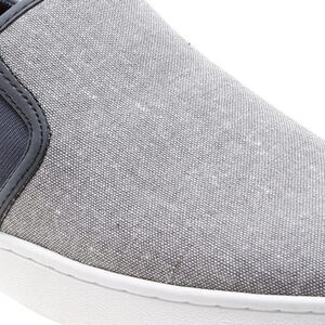 A pair of round-toe grey loafer sneakers with nice styling, slip-on detail. Cushioned foot-bed.