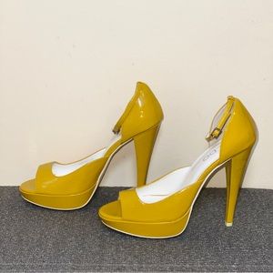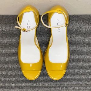 ALDO Patent Leather Platform Peep-toe Sandals, size 37, bright lemon yellow, never worn, new without tags