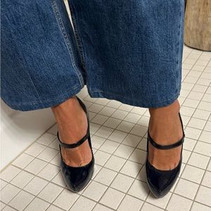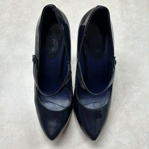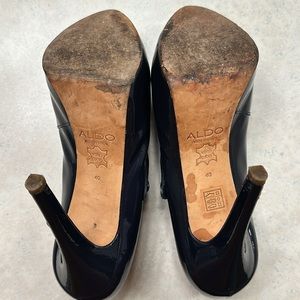 Aldo patten leather deep navy pumps. Couple of nicks on the heel as shown in picture. Normal wear and tear.