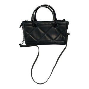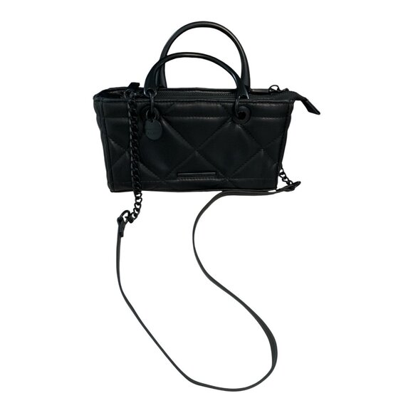 ALDO Quilted Black Faux Leather Mini Satchel – Metal Handles and Chain Strap – 2