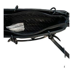 This sleek mini satchel from ALDO blends modern edge with classic structure. Made from black quilted faux leather, it features smooth black metal top handles and a detachable crossbody strap with a stylish chain accent. Compact yet functional, it offers a center zip divider and slip pockets lined with ALDO’s signature branding.