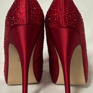 Turn heads with these glamorous ALDO red rhinestone heels. Designed with a bold red satin finish and embellished with sparkling rhinestones, these pumps add instant elegance and shimmer to your outfit. Perfect for parties, weddings, and special occasions, they’re a must-have for women who love making a statement.With their chic design and comfortable fit, these ALDO pumps effortlessly blend fashion and function. Pair them with dresses, gowns, or evening wear for a stylish look that shines all night.
