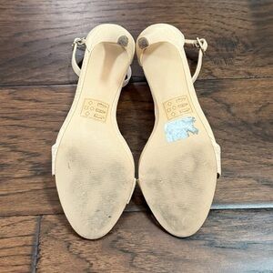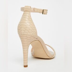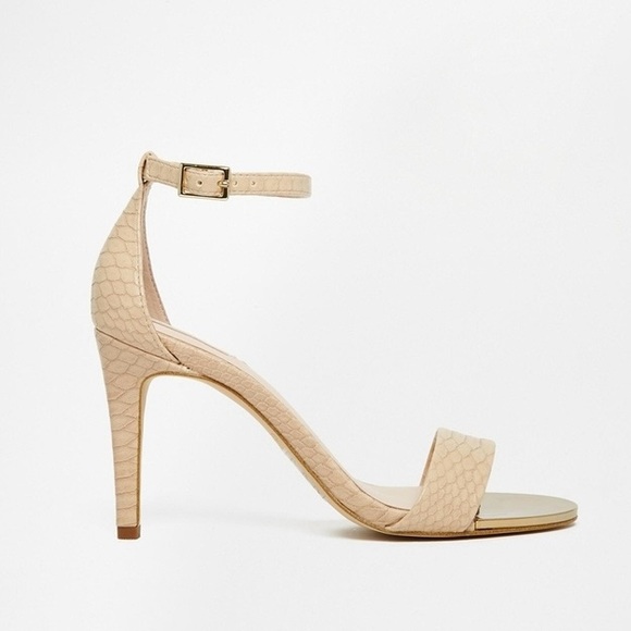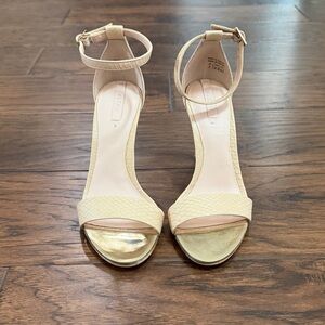 Ridia heels by Aldo. Step out in style with these elegant cream high heel sandals with gold toe detail. Perfect for any occasion, these shoes offer both comfort and sophistication. Size 7. 3.5 inch heel. Worn once for a wedding and still in great condition. Comes from a smoke-free home.