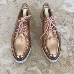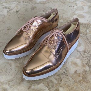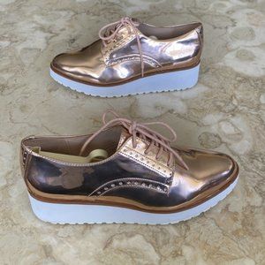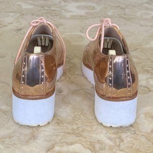 In good preowned condition Aldo Rivale Metallic Chunky lace up Oxfords. Cool rose gold, white wedge soles.