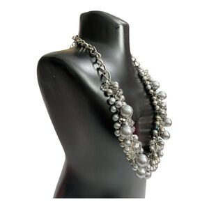 Elegant ALDO STATEMENT Necklace of silver and gray color with iridescent beads and rhinestones all woven into one big beautiful fashion STATEMENT.