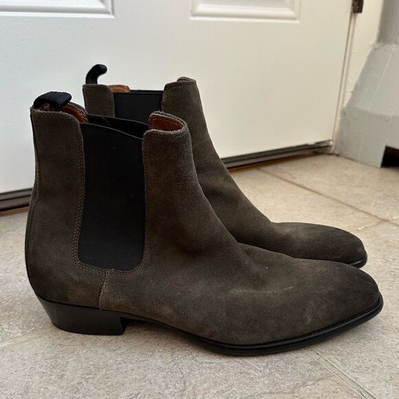 ALDO SIZE 12 khaki green Chelsea boot boots real genuine leather suede ankle