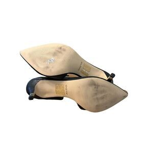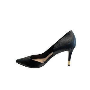 ALDO Size 10 Black Faux Leather Pointed Toe Pumps Gold Stiletto High Heels