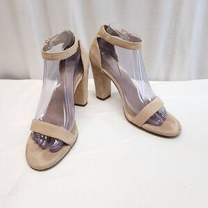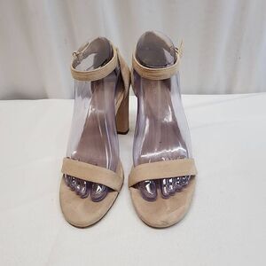 ALDO Size 6 Ankle Strap Block Heel Sandal Tan Pre-owned condition See pictures for wear.