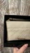 Elegant cream clutch with embossed design. Includes a pink patterned card wallet and a detachable wrist strap . Perfect for versatile styling.