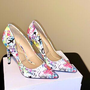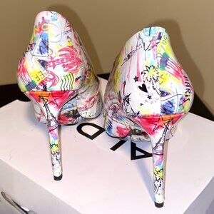 These fun Aldo pumps are made of patent leather. They have capped heels and padded foot beds for added comfort. They are in excellent condition with minimal signs of wear.