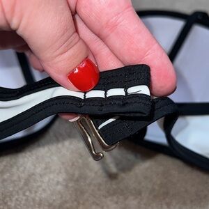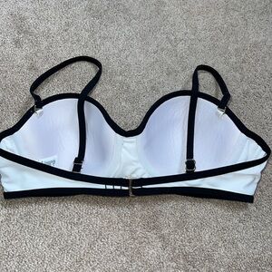 This is a really cute swim top. It’s in good condition. It has nice adjustable straps. It’s a great size and very pretty for the beach. The straps can also be taken off so it’s a Strapless bathing suit top.