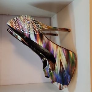 ALDO VODICKA-59 Satin Multi-color Rhinstone Peep toe women's High Heeled shoes