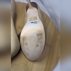 ALDO WOMEN'S SIZE 37 US SIZE 6 PATENT LEATHER BEIGE ROUND TOE 4" HEEL PUMPS