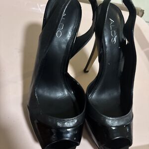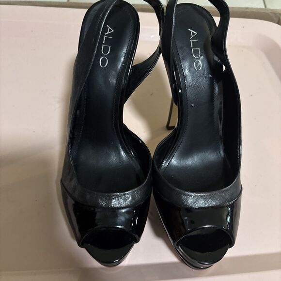 ALDO Women Black Peep Toe Leather Upper Platform High Heel Pump Sz 39 8.5