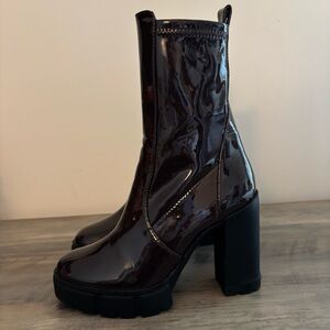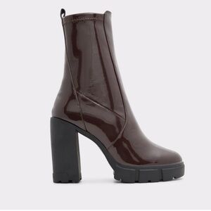ALDO Women’s Ankle Boot Lug sole Dark Brown Platform Patent Leather Size 7 new