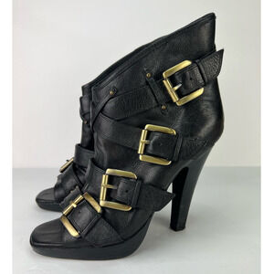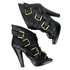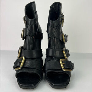 ALDO Women's Black Leather Buckle Open Toe Platform Booties Stiletto Heels Eu 38 U.S 7.5-8