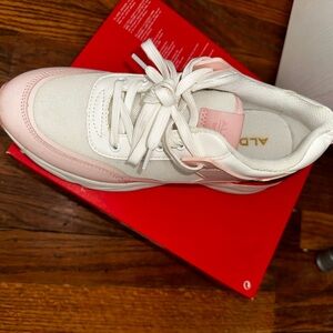 Step out in style with these chic ALDO sneakers. Featuring a trendy pink and white design, these shoes offer both comfort and fashion. Perfect for any casual outing.