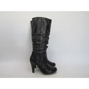 ALDO Womens Size 37 EUR Black Leather Slouch Zip Knee High Fashion Boots
