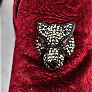 ALDO Y2K Novelty, mix of modern and vintage men's dressy burgundy velvet loafers. Panthere heads set with marcasite-like silver/gray pieces and red rhinestones.