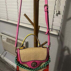 Wicker purse with multi-colored accents from ALDO. Very lightly used, excellent condition. Comes with adjustable pink crossbody strap.