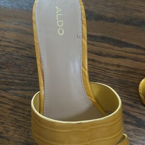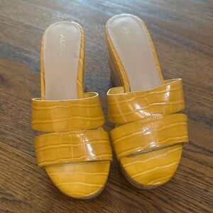 ALDO gold faux alligator double strap cork platform sandals. Size 8.5. Excellent condition. Nonsmoking home.