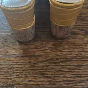 ALDO gold faux alligator double strap cork platform sandals. Size 8.5.
