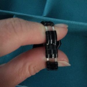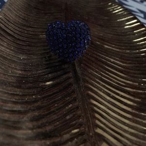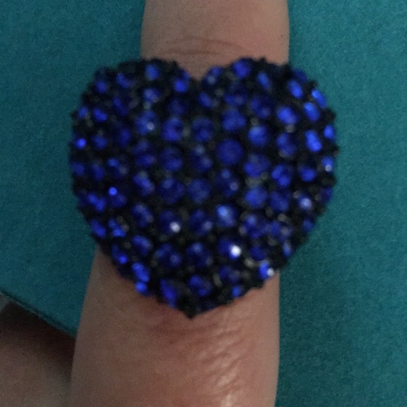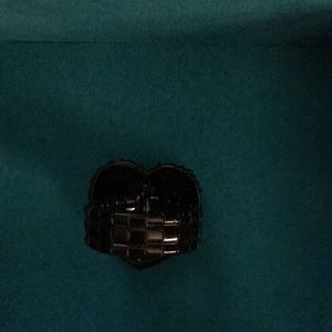 Stretchy black band ring with dark blue diamond heart