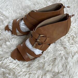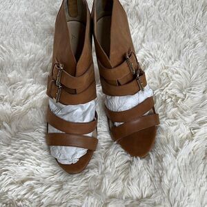 Aldo brown leather buckle heels