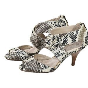 ALDO Open Toe Cris Cross Strapped Snake Embossed Kitten Heels in Size 38/7.5