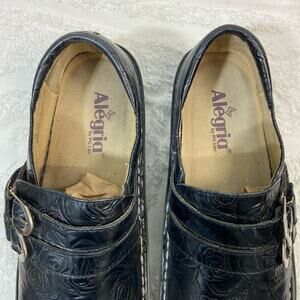 ALEGRIA ALI Floral Slip On ALL-571 Leather Women's Black Sz 10.5 Goth Core Punk