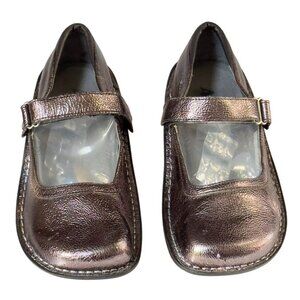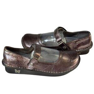 ALEGRIA Belle Women's Metallic Mary Jane Shoes Leather Adjustable Strap Size 37