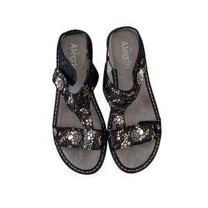 ALEGRIA Black Silver Wedge Sandals Slides Size 38/8