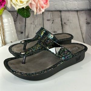 ALEGRIA 🦋 CARINA TECTONIC Multicolor Thong Pewter Pyramid Embellishment Sandals