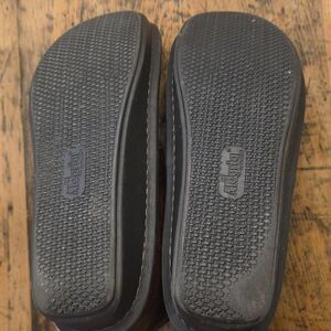 Mild rocker outsole is engineered to reduce heel and central metatarsal pressure and the bottom is flat to increase stability. The footbed is loaded with cork, memory foam and latex to create a perfect fit.