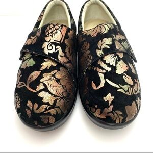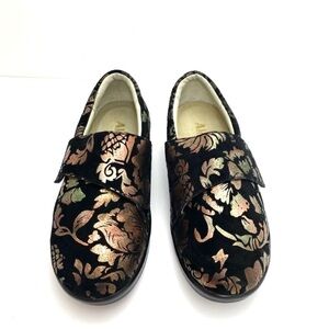 ALEGRIA Lauryn Regal Gold Copper Floral Print Clog Shoes Back Size 7 LAU-557W