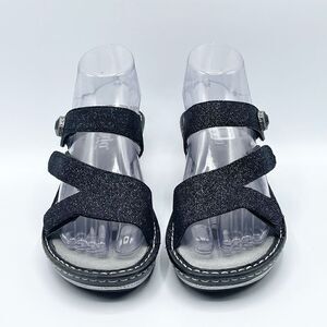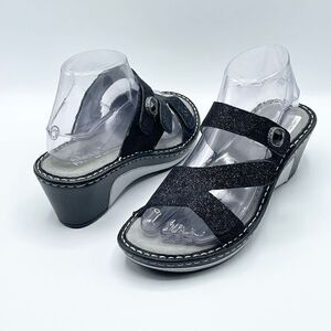 ALEGRIA PG Lite Black Leather Loti Glitterati Open Toe Wedge Sandals EU37 - BRAN