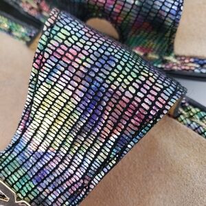 ALEGRIA Vienna Shine On Sandals 38 Multi-Colored Leather Rocker Bottom Shoe, Rainbow, Watercolor, Mixed, Reptile Pattern