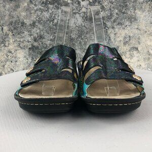 ALEGRIA Women's 38 (8-8.5) Venus Multicolor Gleam Leather Strappy Wedge Sandals