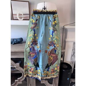 ALEMAIS Gilly Bird-Print Wide-Leg Linen Pants Size 2