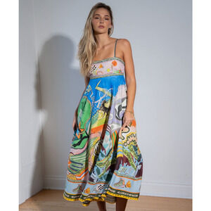 ALEMAIS Lucky Pace Shirred Linen Midi Sun Dress US 4
