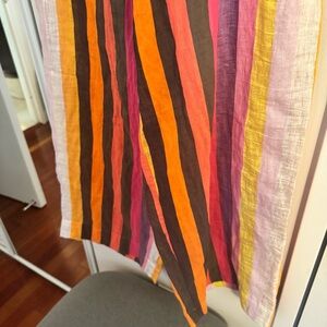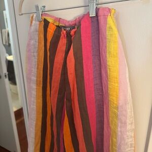 ALEMBIKA colorful striped linen cropped wide leg pants