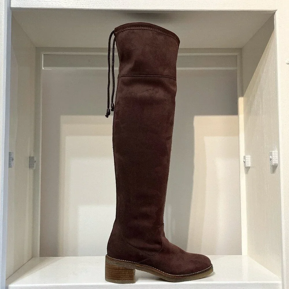 Brown over the knee ultra suede boot.