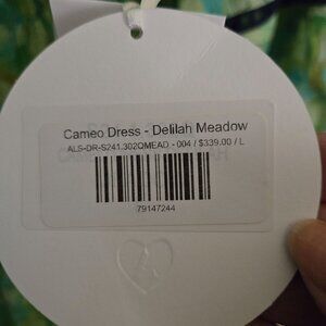 Elevate your style with the ALESSANDRA Cameo Midi Dress, featuring a beautiful Delilah Meadow print. This dress offers a flattering puff 3/4 sleeve design, smocked waist, and practical pockets. Fully lined with designer crochet detail for a touch of elegance. Retail $228
