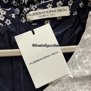ALESSANDRA RICH Floral Daisy Print Lace Trimmed Silk Mini Dress