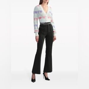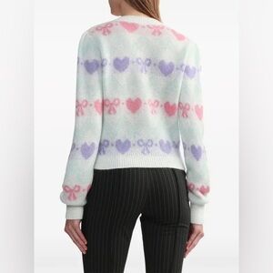 ALESSANDRA RICH Pastel Heart Bow Patterned Intarsia-Knit Cardigan Size 46 NWT