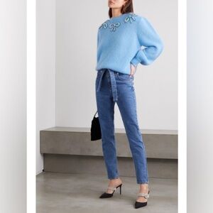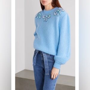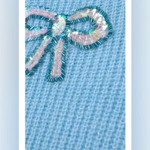 ALESSANDRA RICH Softest Mohair Wool Sweater w/ Sequin Ribbons Bows Size 42 VGUC