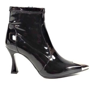 ALESSANDRO DI MARIA 🇮🇹 WOMEN BLACK PATENT LEATHER FASHION ANKLE BOOTIE