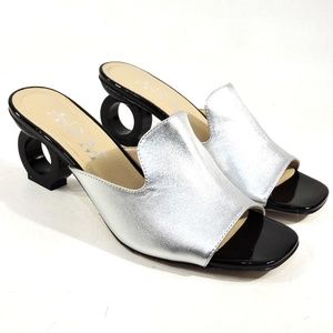 ALESSANDRO DI MARIA 🇮🇹 WOMEN'S SILVER LEATHER FASHION MULES