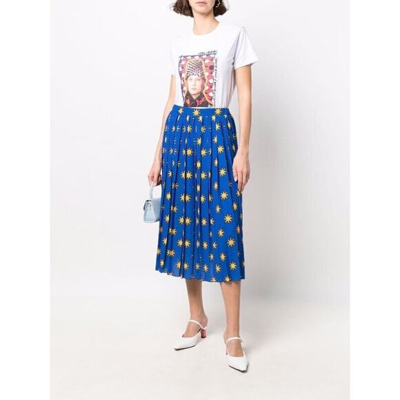 ALESSANDRO ENRIQUEZ Sz 38 2 XS Blue Yellow Stars Pleated Midi Skirt
